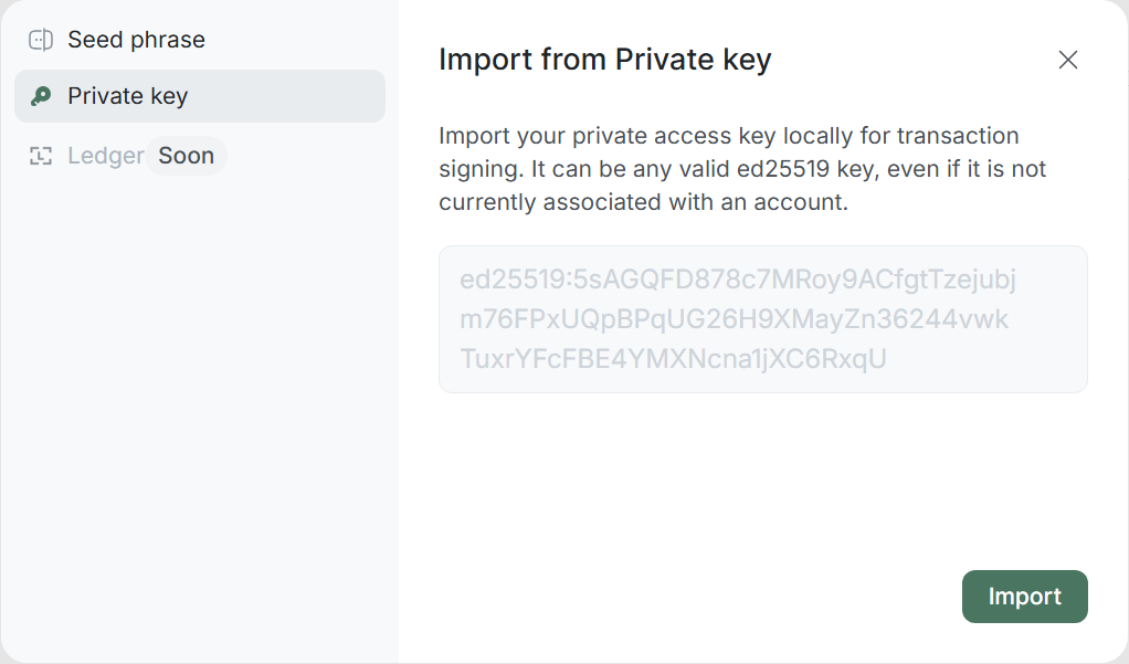 Import via private key