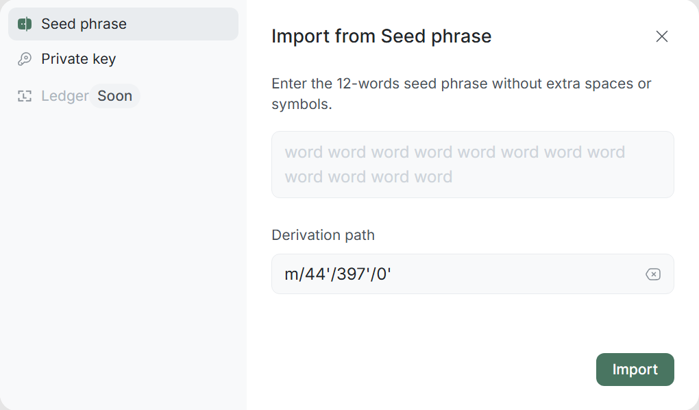 m/44'/397'/0') set by default, but you can change it if necessary.